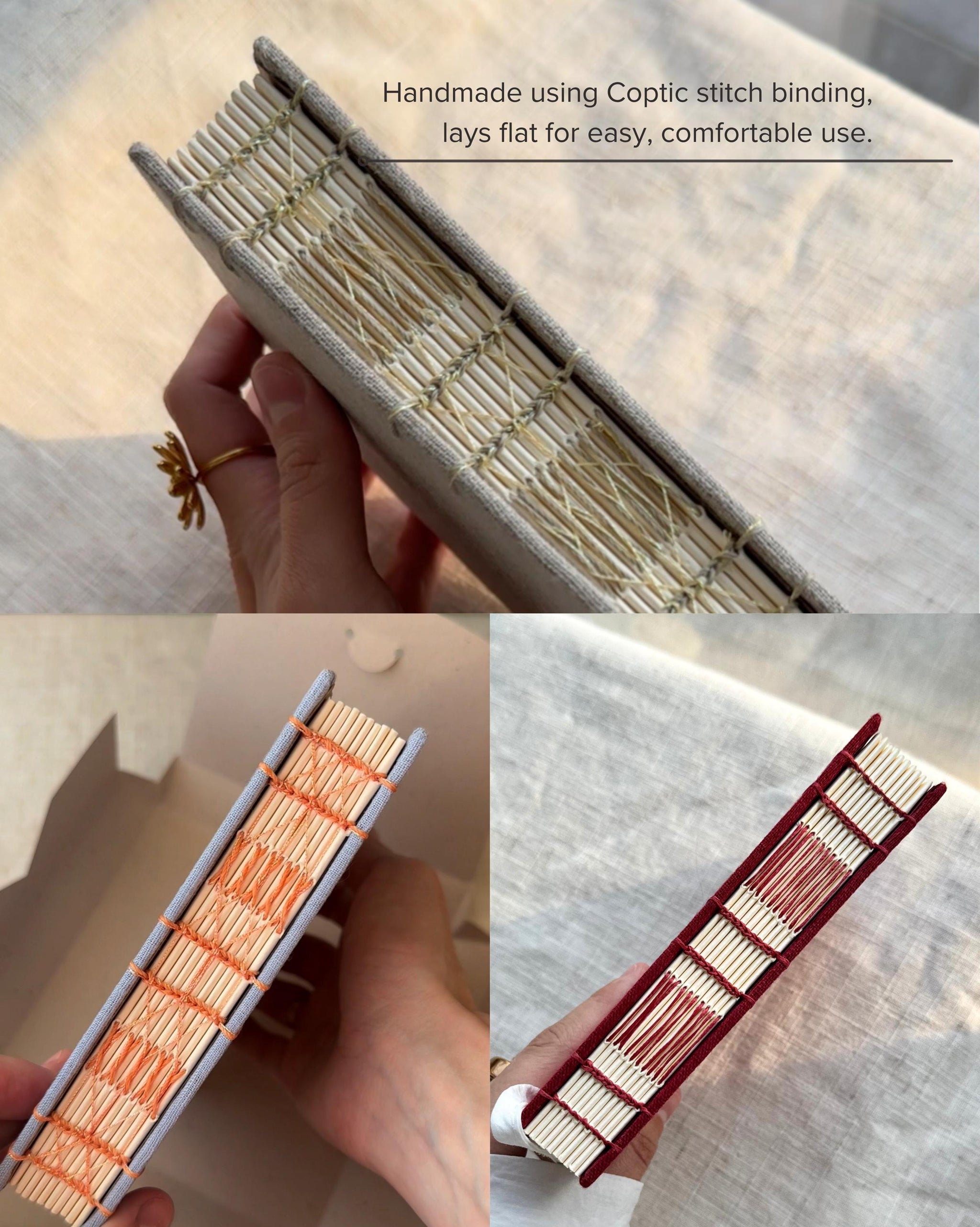• Binding: exposed spine, Coptic stitch (opens flat)