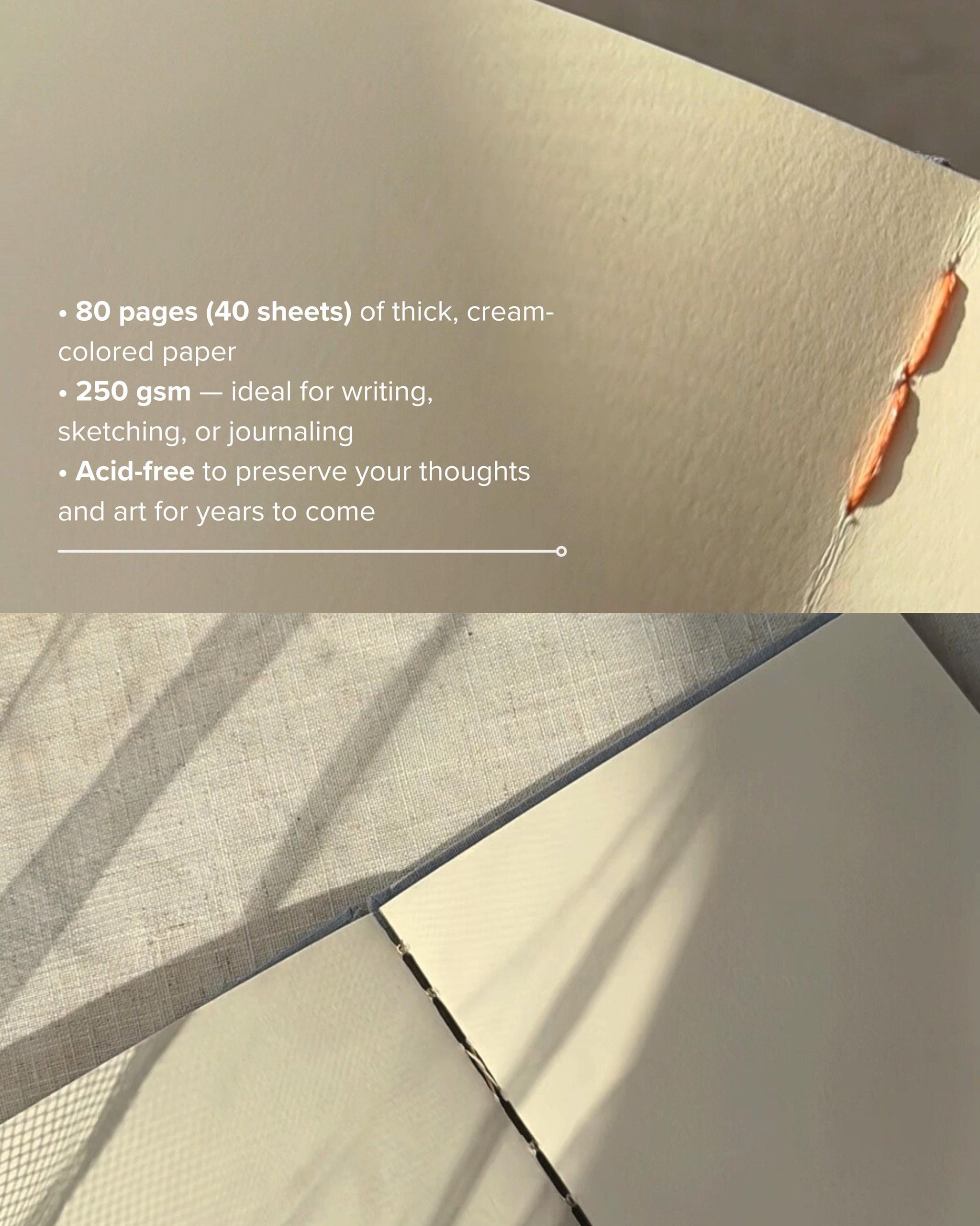 This handmade book is crafted with care and bound using the elegant Coptic stitch technique. It opens flat and is perfect for writing, drawing, collecting thoughts, or keeping moments that matter.