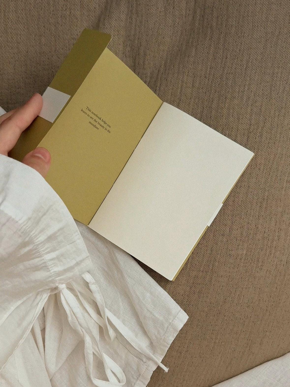 - Aesthetically pleasing notepad, with tactile paper, calm colors and phrases inside.