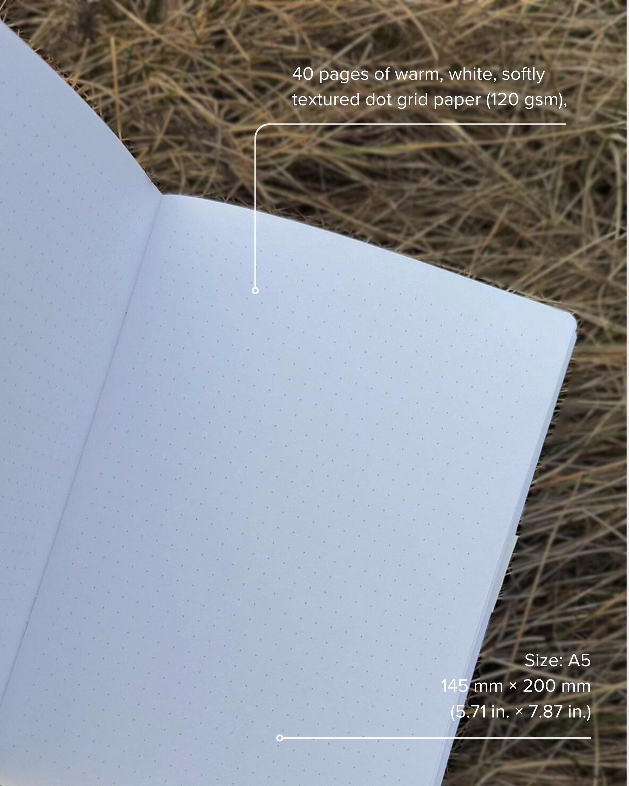 • Premium paper that's beautiful to write on (40 pages with dot grid, they are slightly textured)