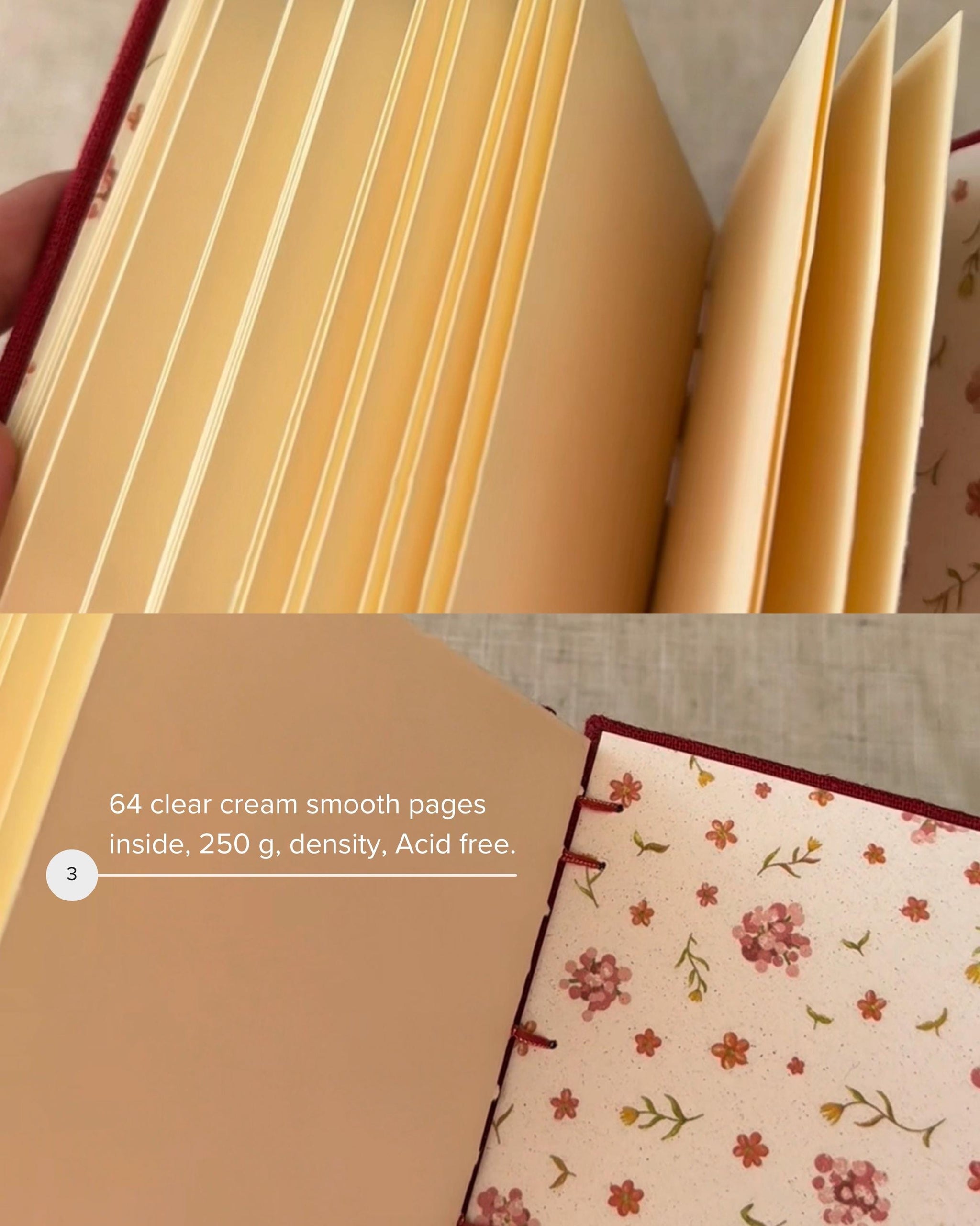 • 64 pages (32 sheets), 250 gsm cream paper, Acid free.