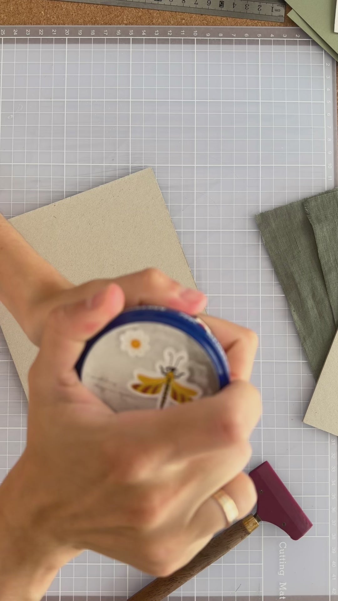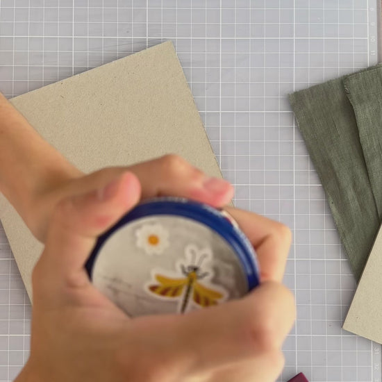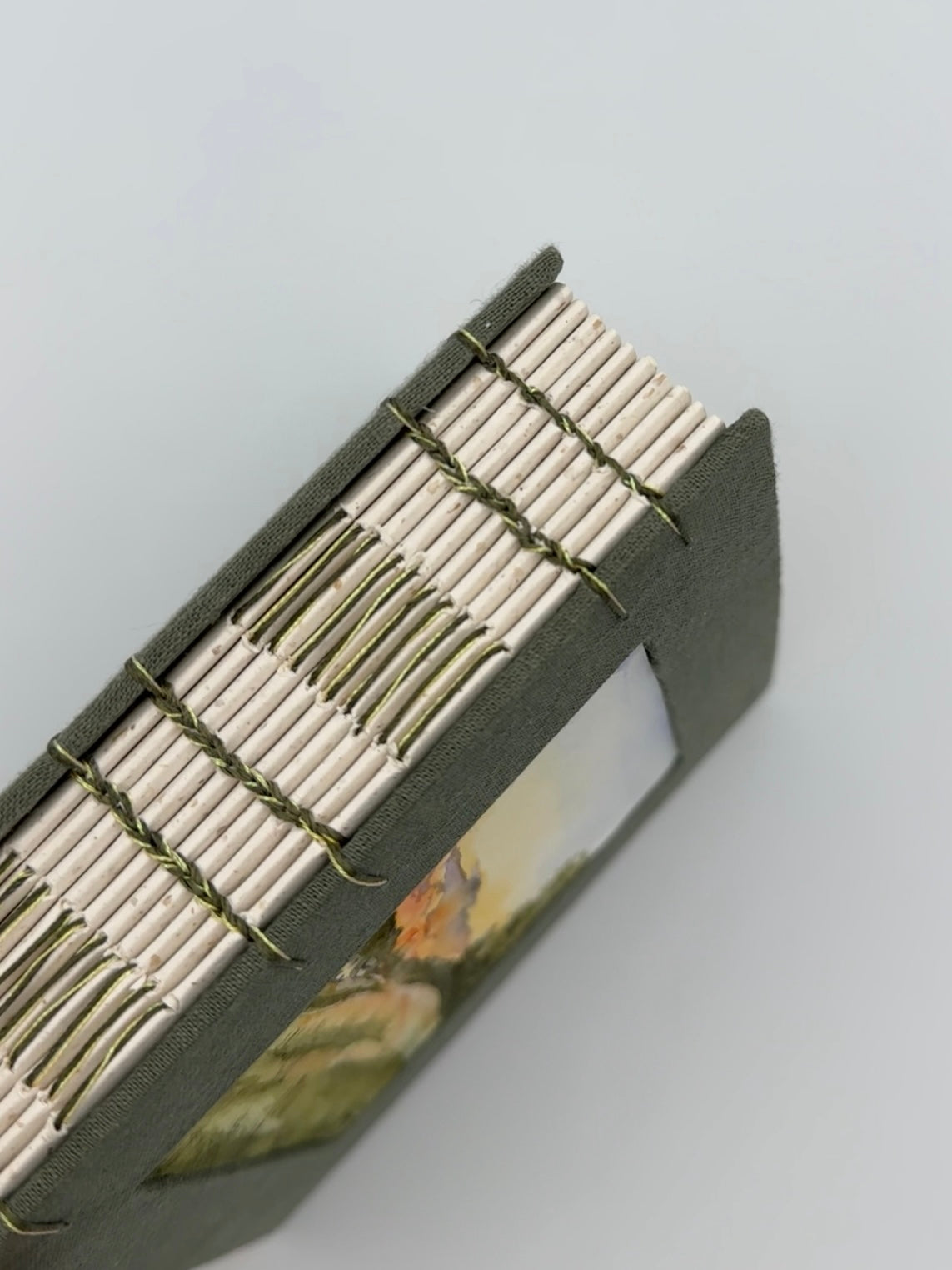 A hand-crafted notebook with a linen cover and an original watercolor painting.