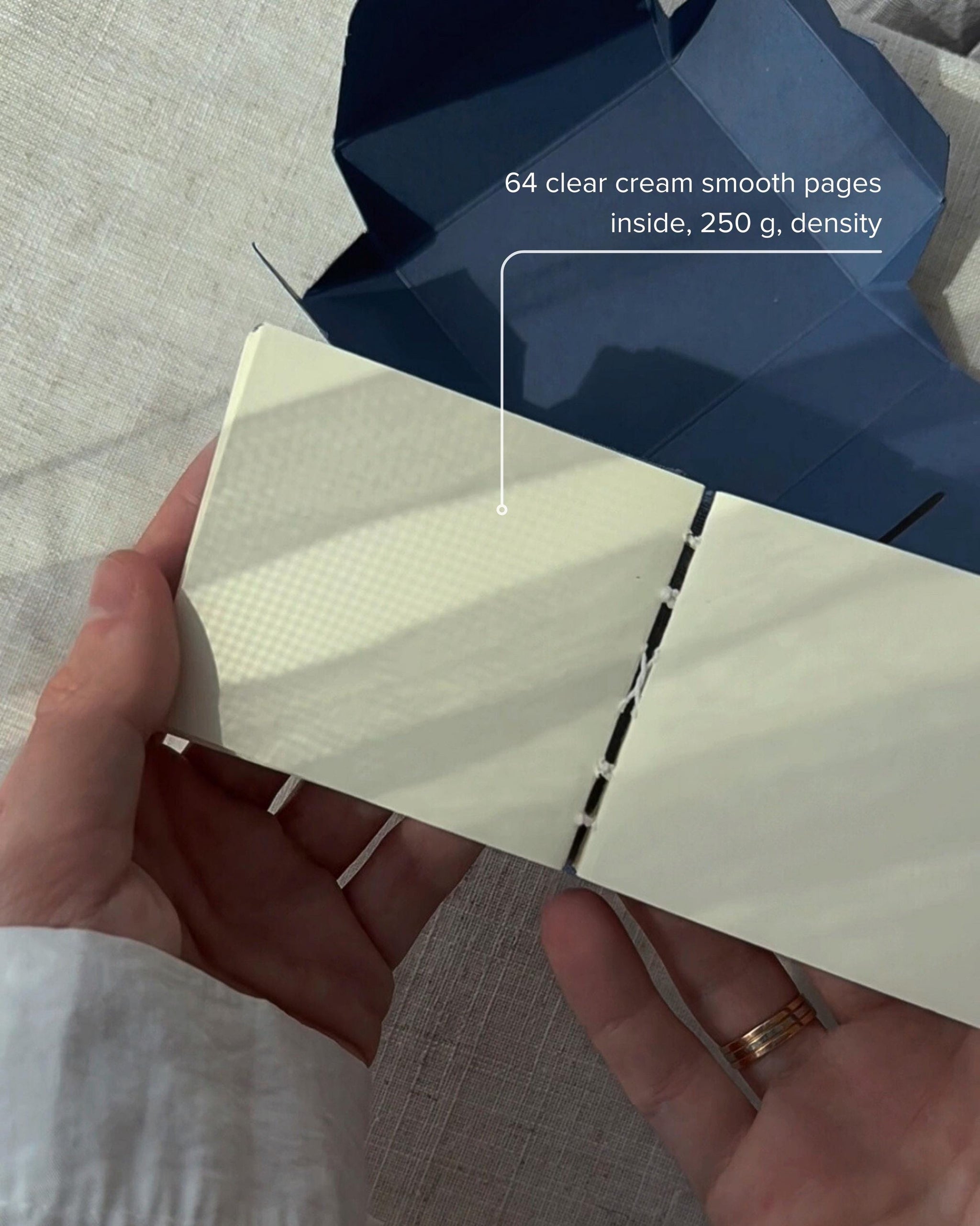 Pages: Book feature 64 pages of smooth, cream-colored paper, 250 g. density.