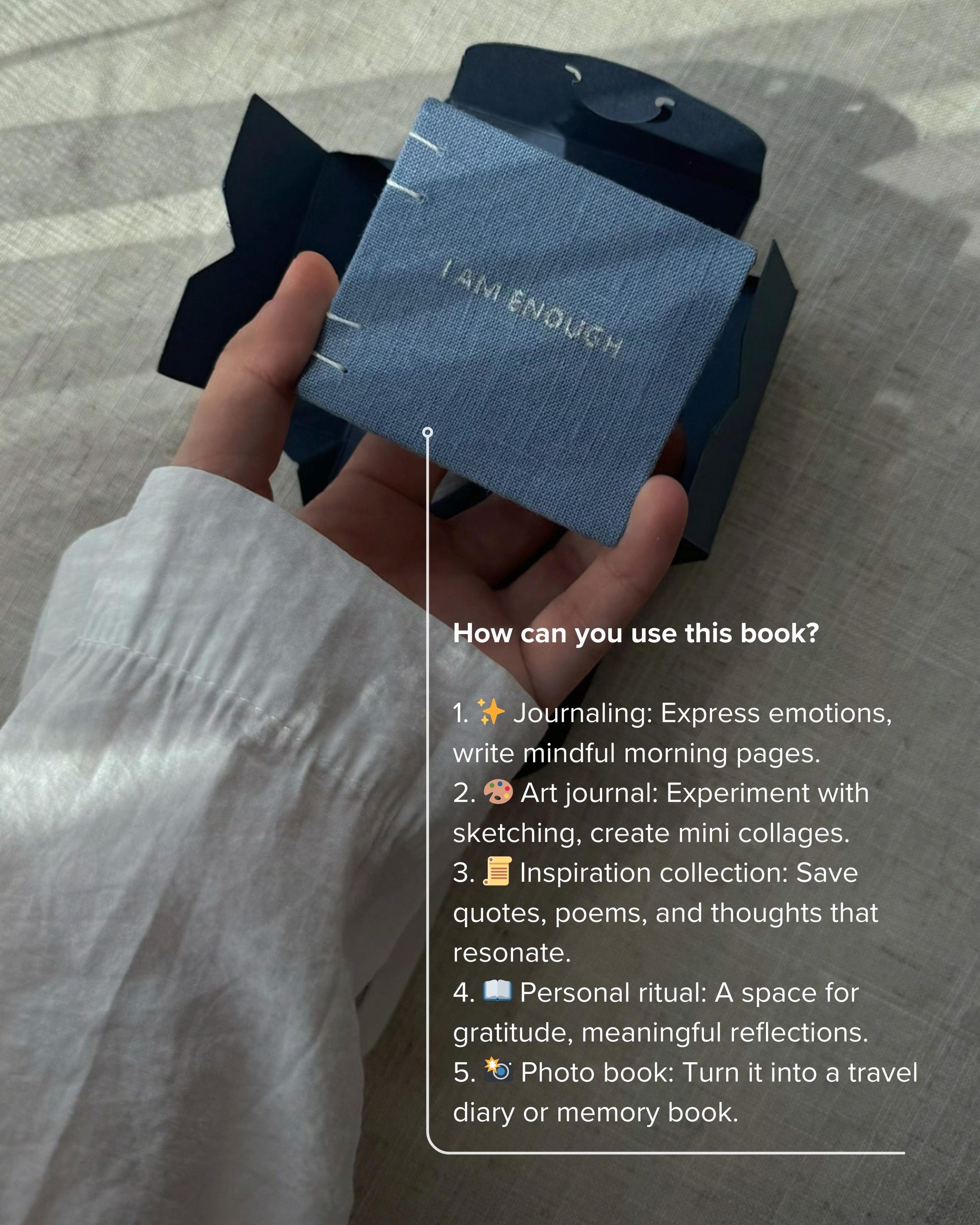 "I am enough"—not just a phrase but a gentle affirmation to accompany you through your day. This notebook is designed not only as a vessel for your thoughts but also as a reminder of your inherent worth, at every moment.