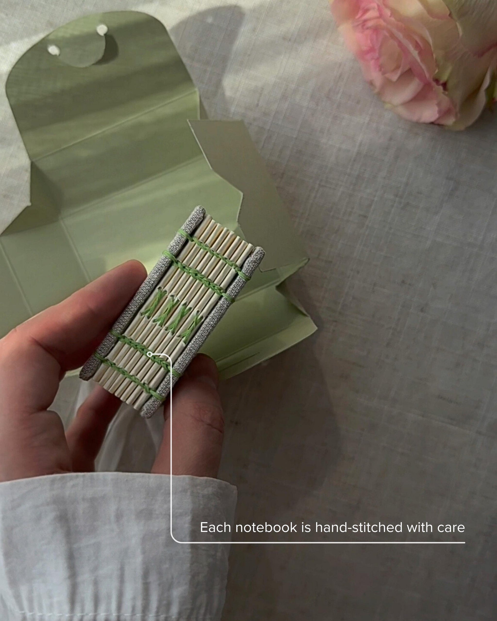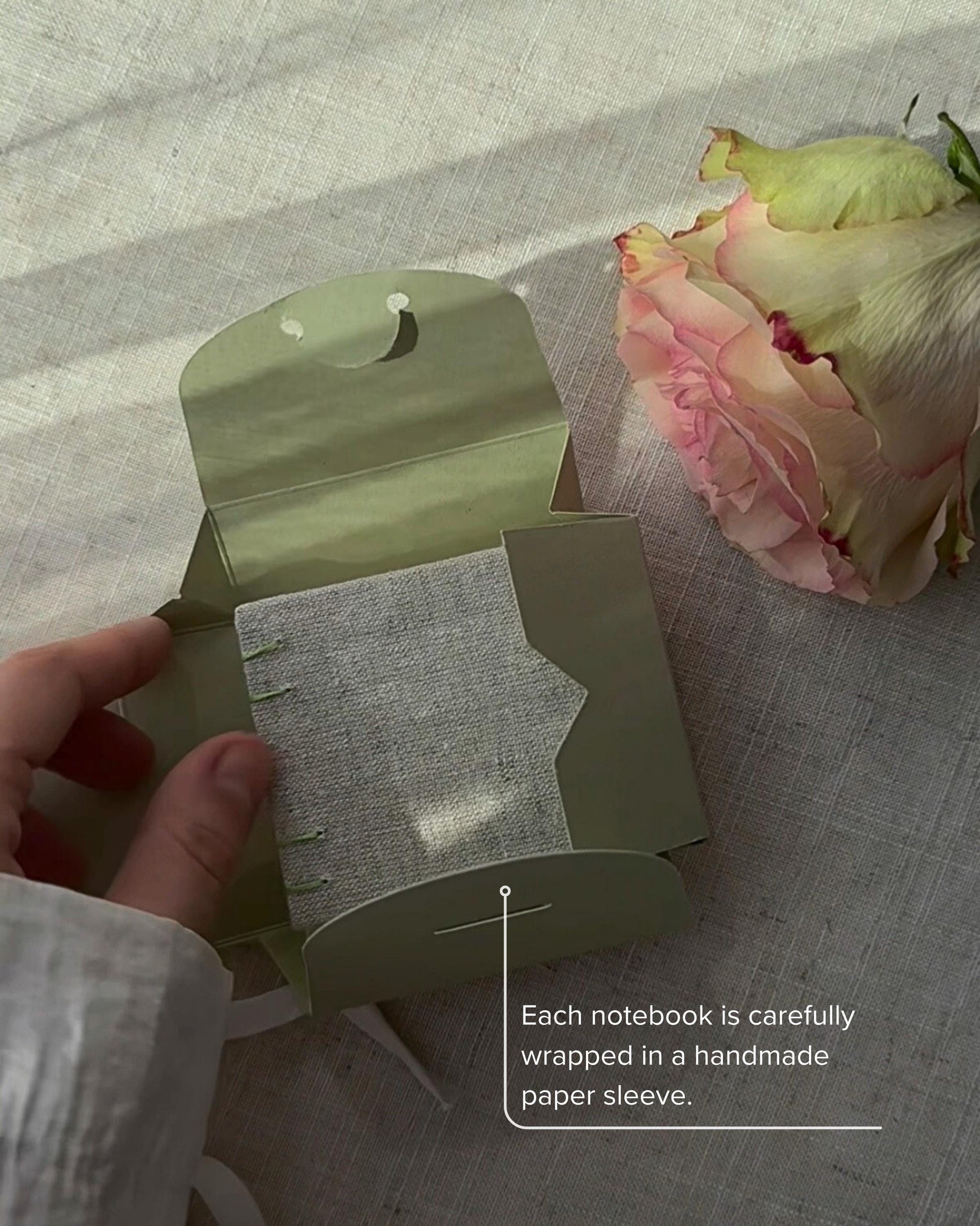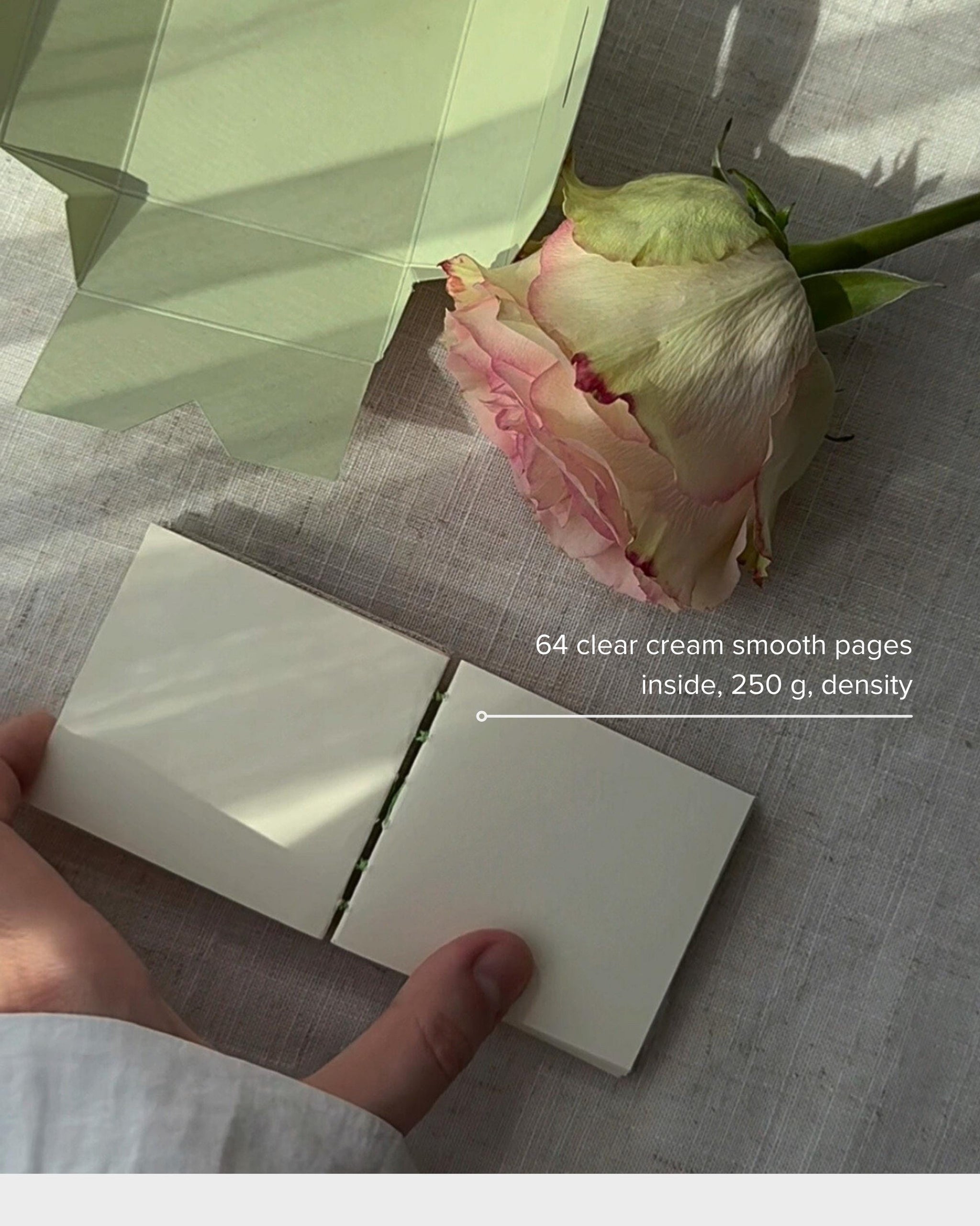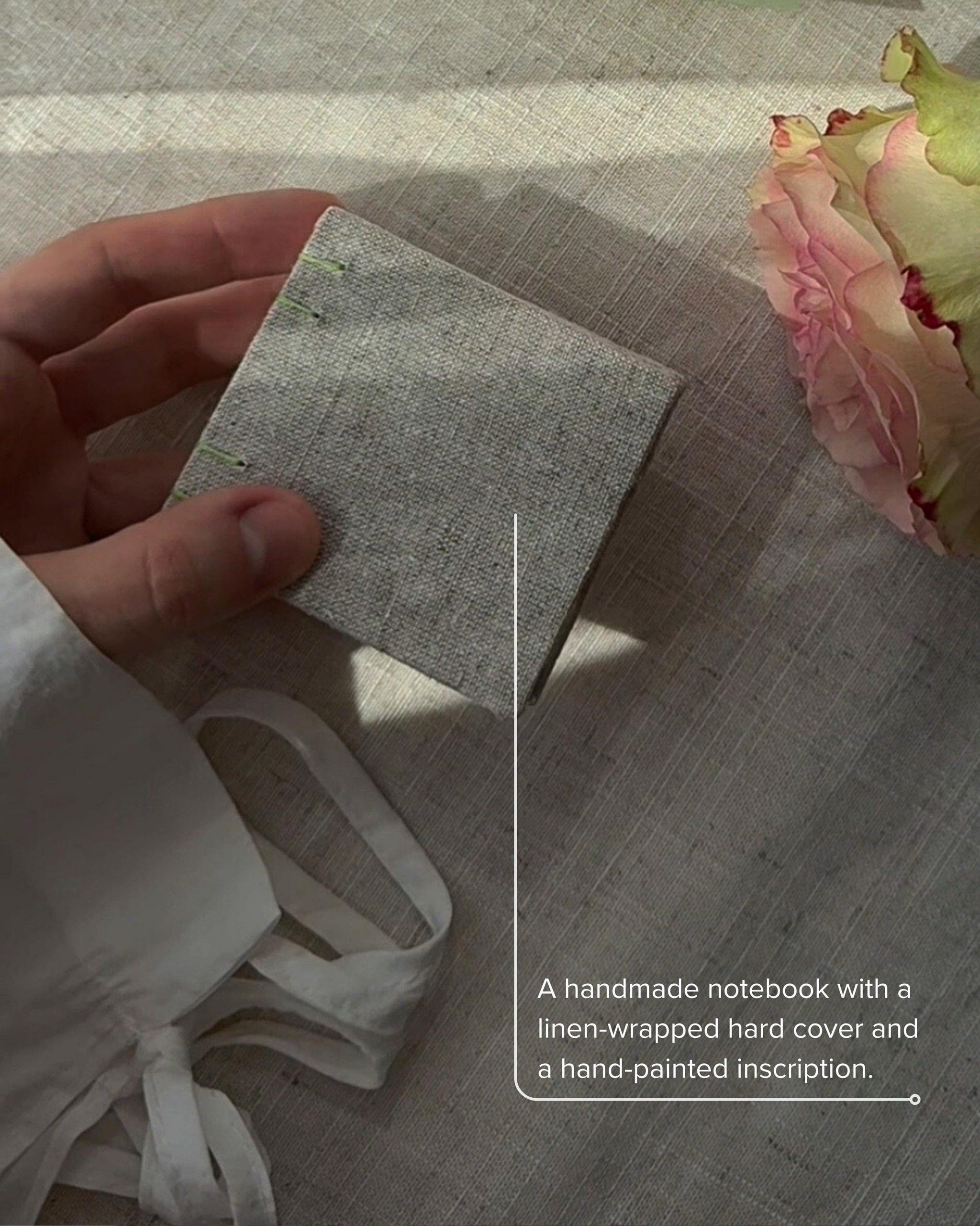 Cover: The sturdy cardboard cover, wrapped in high-quality linen fabric, is delicately hand-painted with acrylic paint, ensuring each notebook is unique and carries a personal touch.