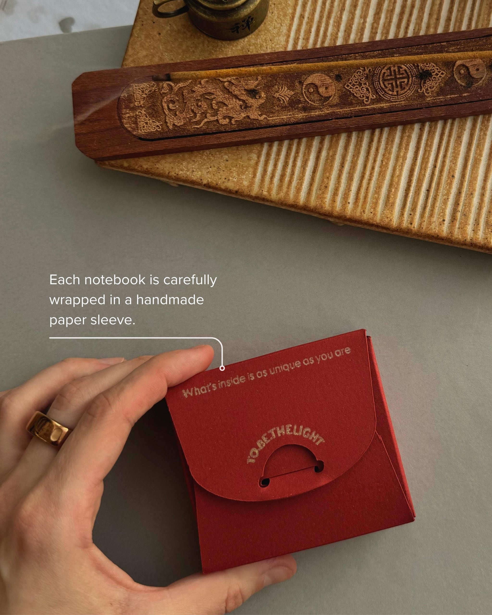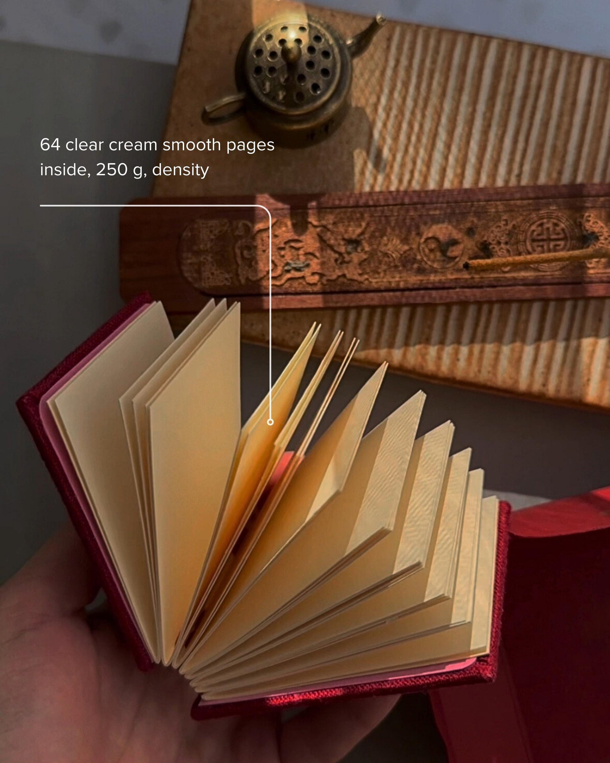 Details: - Size: 75mm x 65mm x 24mm (2.95" × 2.56" × 0.94") - 64 clear cream smooth pages inside, 250 gram density. Made slowly, with care. Wrapped like a gift.