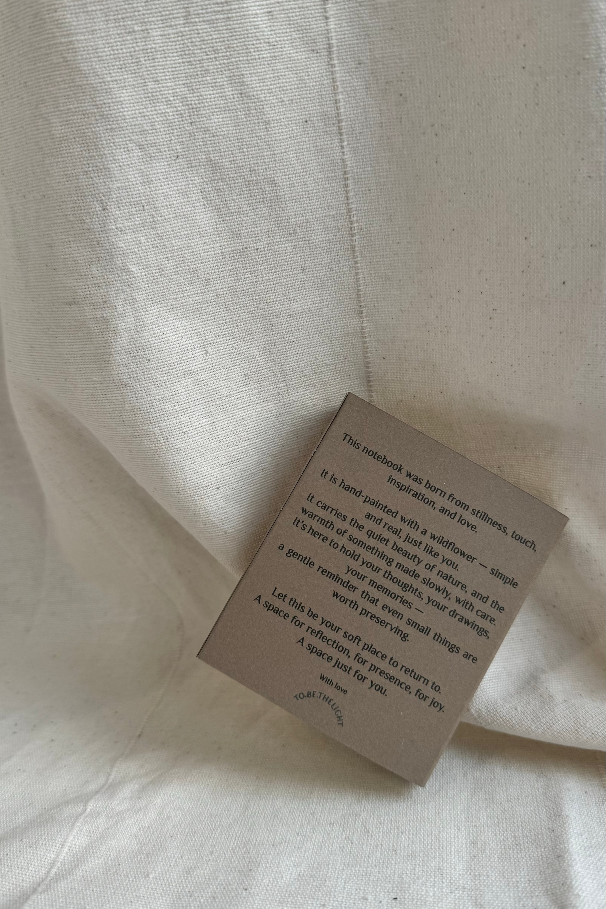 Each notebook in this collection is wrapped in natural linen and adorned with a one-of-a-kind acrylic painting. And every flower is more than just a plant — it's a feeling. Something to hold in your hands, to bring you back to yourself.