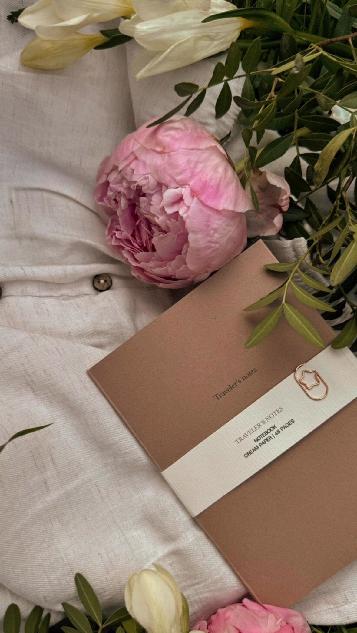 - Aesthetically pleasing notebook, with tactile paper, calm colors and phrases inside.
