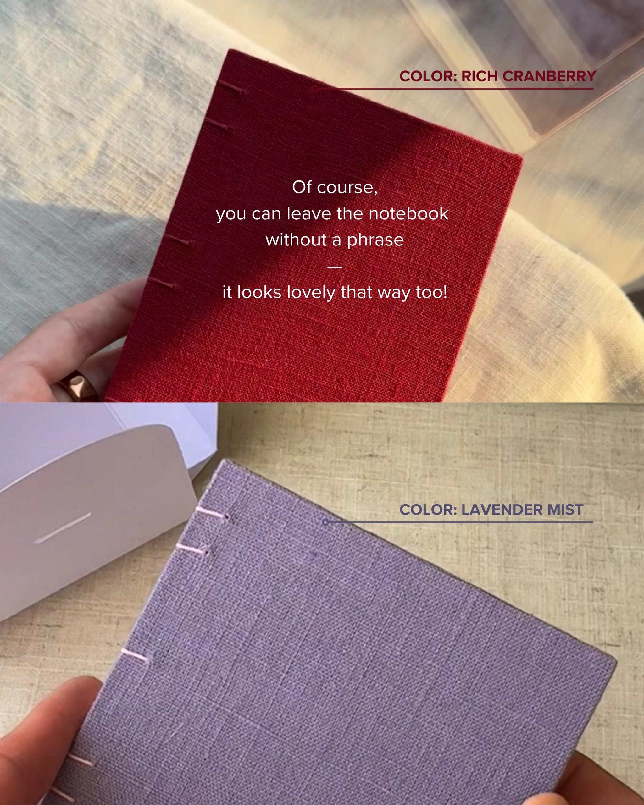 🌿 1. Choose the cover color — 10 linen shades available.