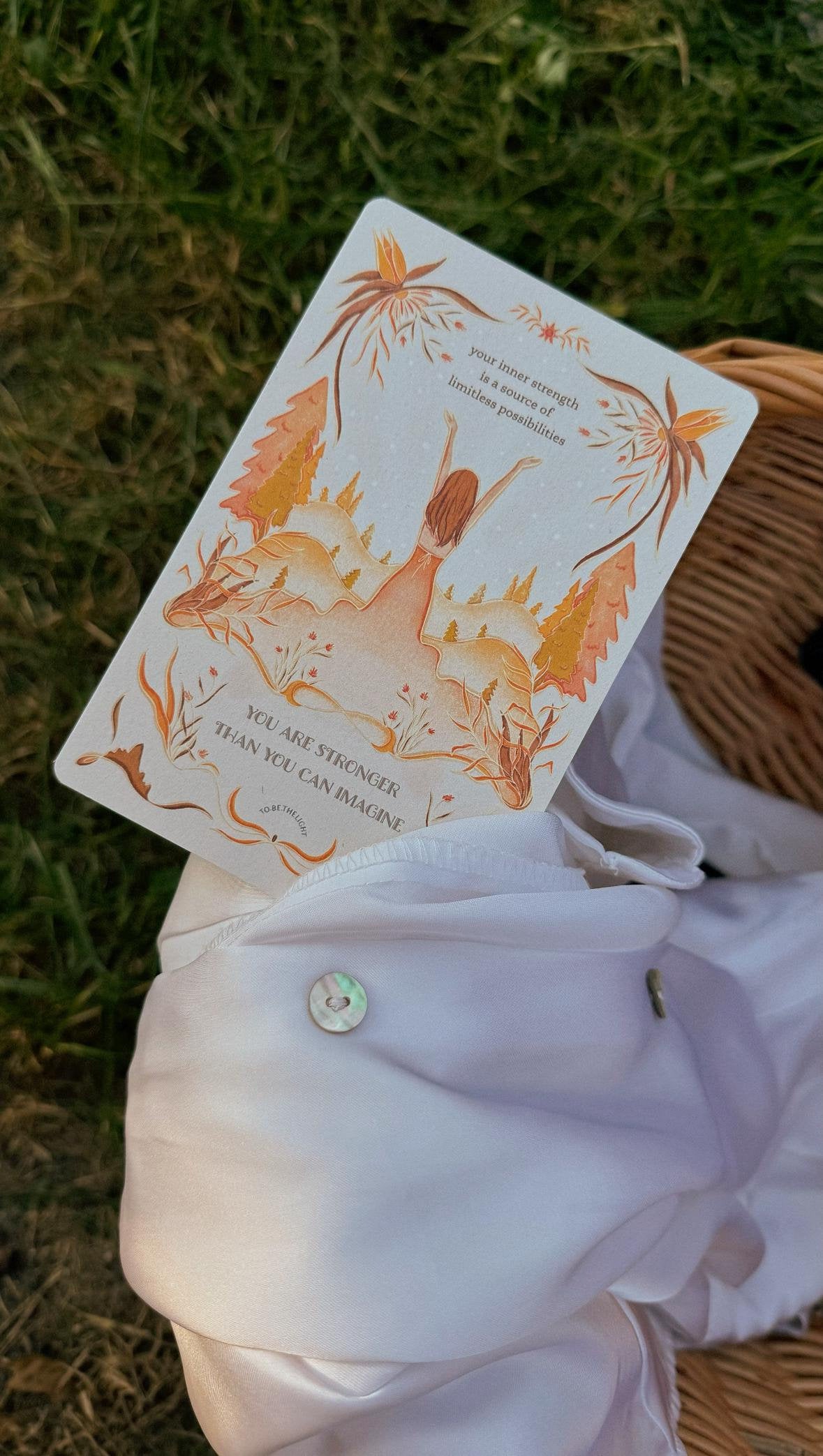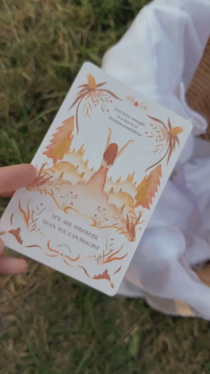 Unique handmade postcard with affirmation. Mindfulness stationery with author's illustration in art nouveau style.