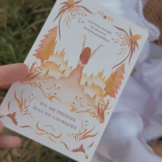 This postcard says: "Your inner strength is a source of limitless possibilities. You are stronger than you can imagine" - A reminder that inside we are as strong in spirit as the mountains. And that even if things are difficult for us now, we will get through it all because we are much stronger than we can imagine.