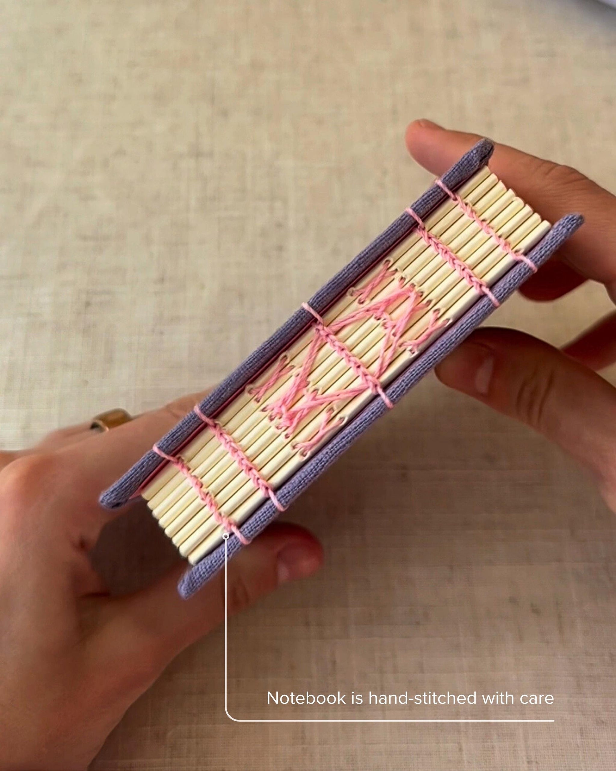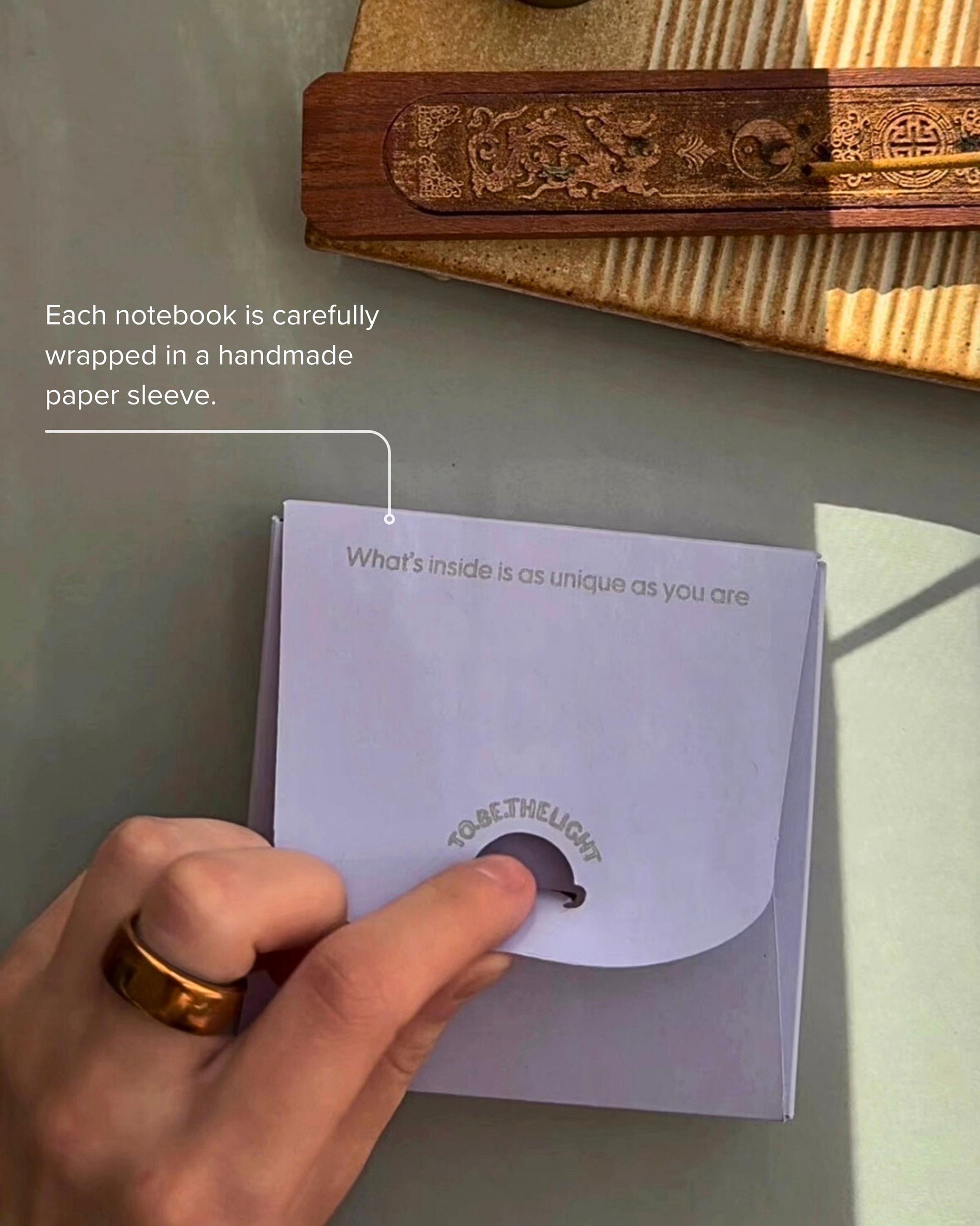 Every stitch is made by hand, slowly. Every page — smooth, creamy. For your thoughts. For your art. For the kind of beauty that comes when you're quiet enough to feel it.