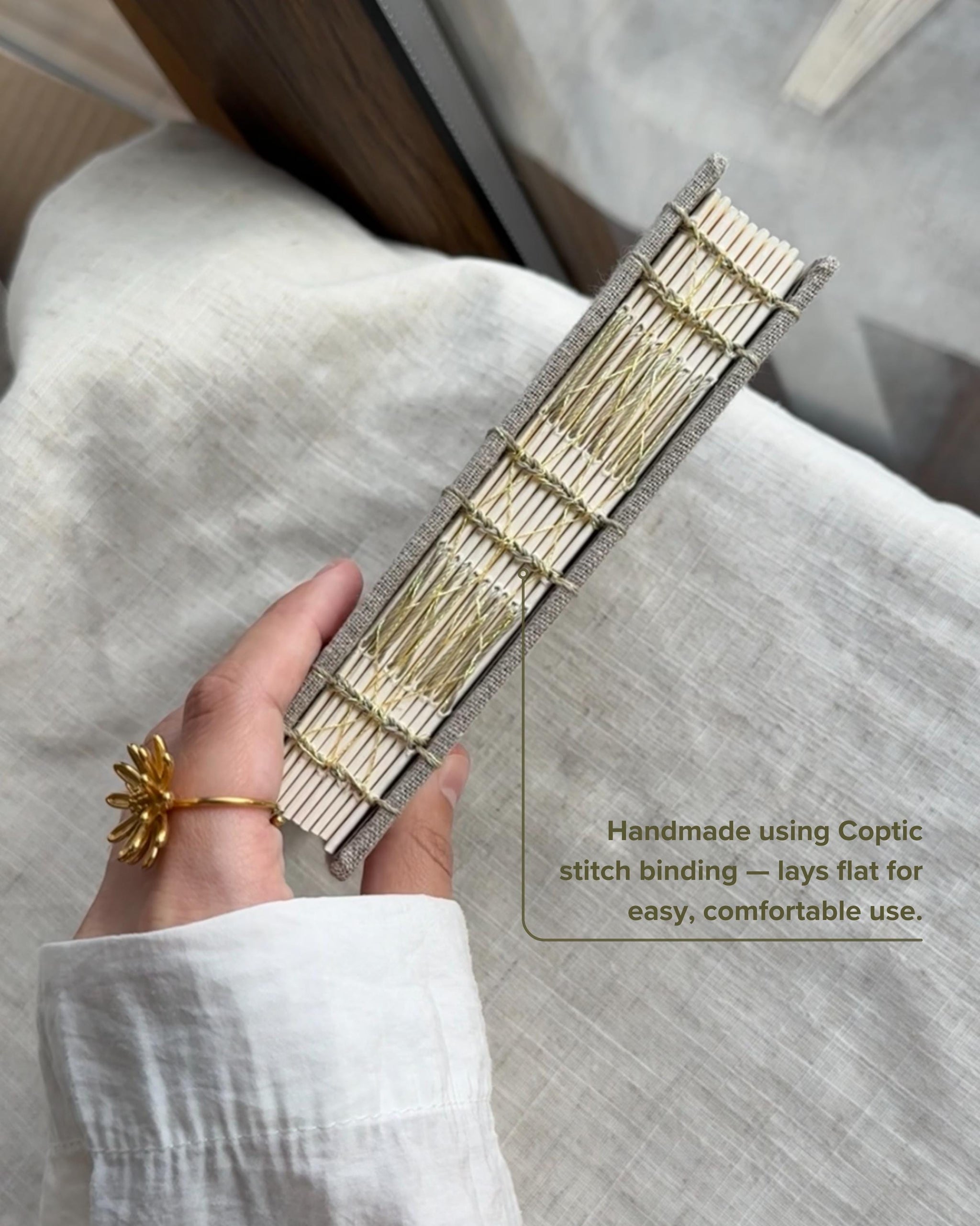 • Binding: Coptic stitch — opens fully flat